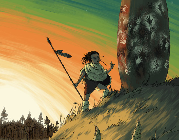 A lone hunter comes across a mysterious megalith just as the sun is setting.