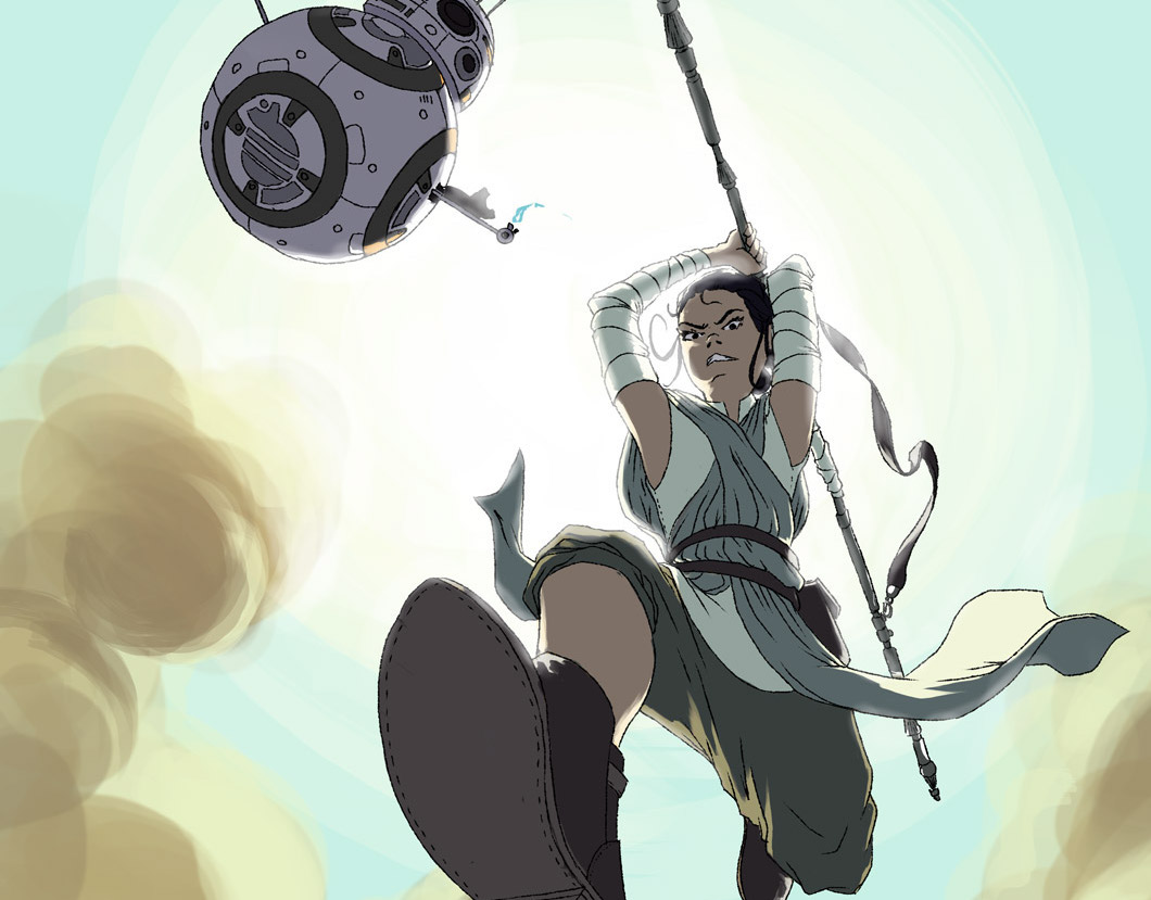A quick fanart exercise that turned into something a bit bigger. Rey and BB-8 getting ready to kick some butt.