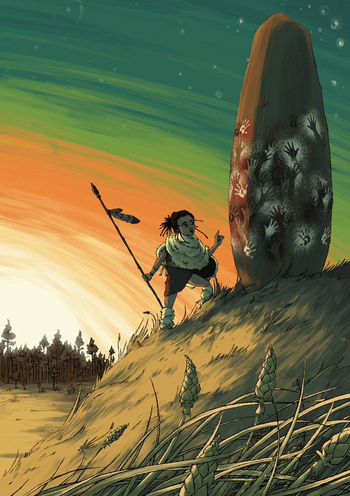A lone mesolithic hunter comes across a mysterious megalith just as the sun is setting. Really hoping to come back to this world when I'm a bit less busy next month.